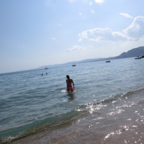 Пляж при отеле 6 евро за два лежака и зонт на целый день. Вход каменистый. Левее лежаки при баре при заказе на 5 евро ( соответственно, в этом баре фраппе - 3.5 евро, мороженое тоже 3,5, когда в других местах на пляже фраппе - 1 евро, мороженое 1-1,5), wi-fi, но дно тоже в камнях.